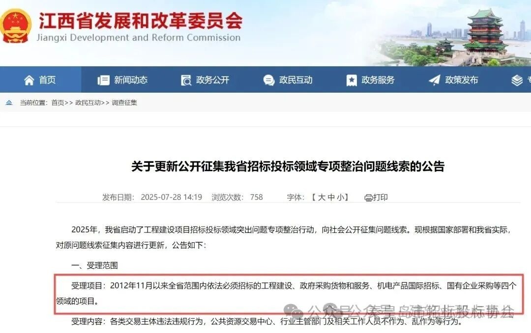 从江西到湖南,全国范围内的招投标大整治,已经正式开始。