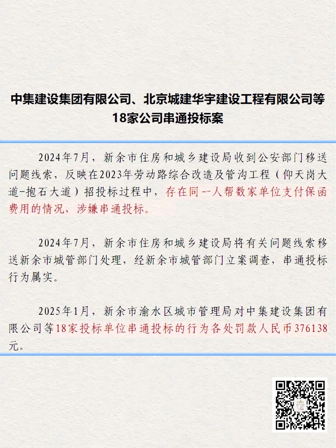 2025年1月,监管部门给予这18家单位每家376138元的罚款,一共罚款677万!可笑的是,这18家费尽心机串通,最终却没干过本地单位,甚至连中标候选人名单都没挤进去!“一顿操作猛如虎”,白忙活一场还倒贴巨额罚款!