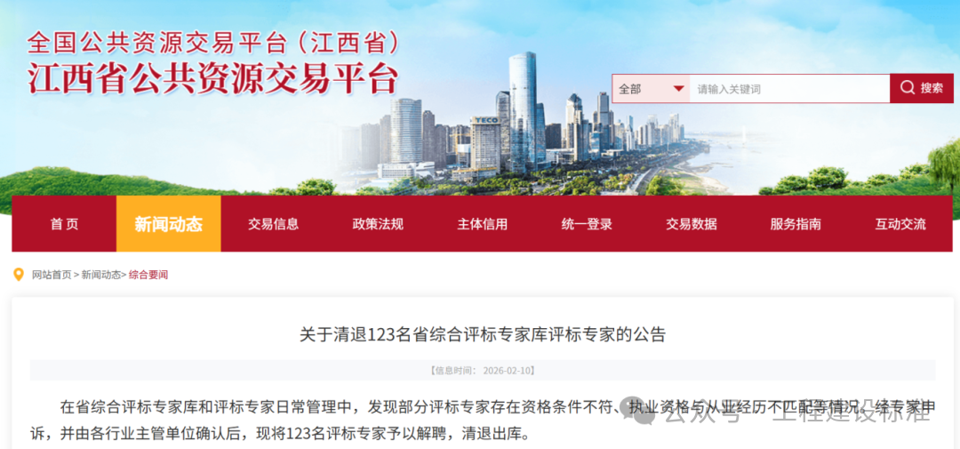 近日,江西省一则公告引发了不少关注,123名评标专家被一次性清退出库。