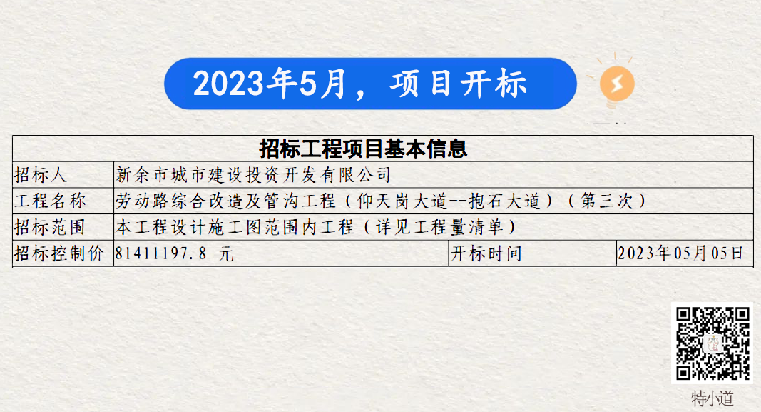 时间拉回2023年5月,江西新余劳动路综合改造项目公示了中标候选人。该项目招标控制价8141万,能拿下这样的项目的单位,注定不简单。