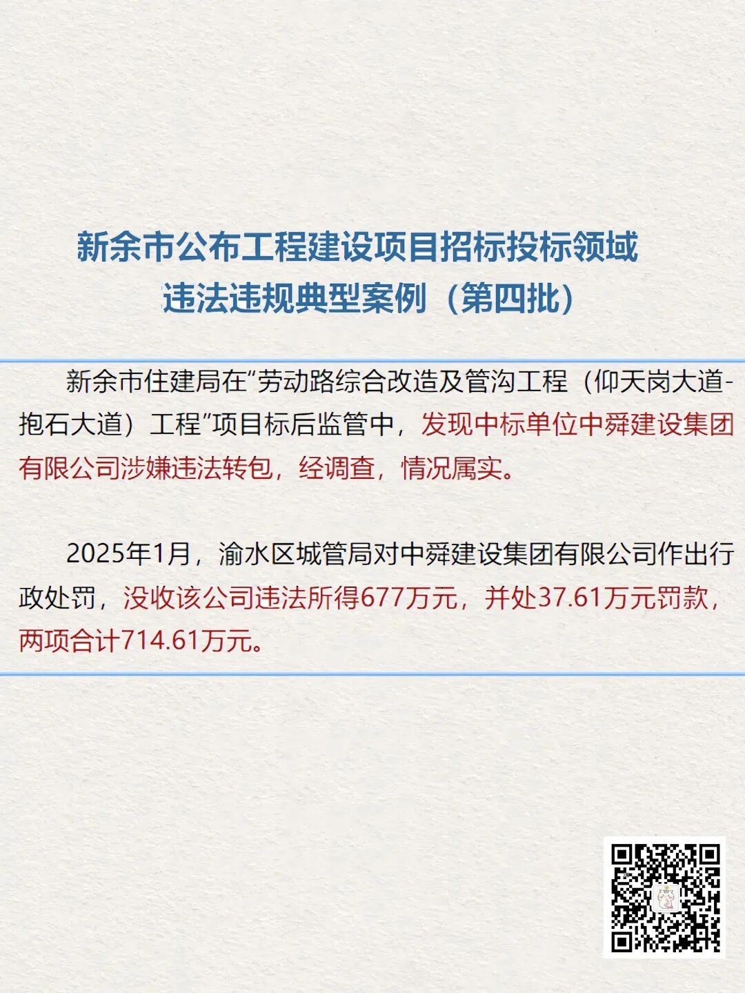 住建局对该项目进一步调查后发现,最终拿下该项目的江西本地单位A公司,中标后转手将工程进行了违法转包。“是可忍孰不可忍”!住建局重拳出击,没收A公司违法所得677万元,再罚37.61万元,合计714.61万元!