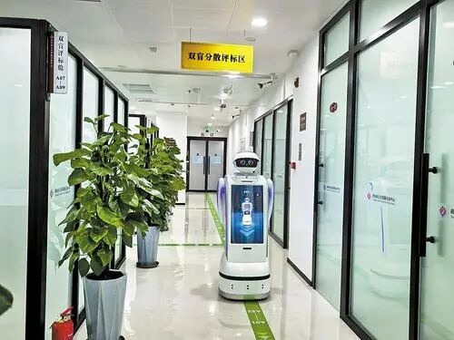 2025年12月25日,唐山市公共资源交易中心内,智能机器人在评标区巡检。河北日报记者王育民摄